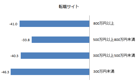 転職関連サイト利用者のNPS、かならずしも年収に比例せず