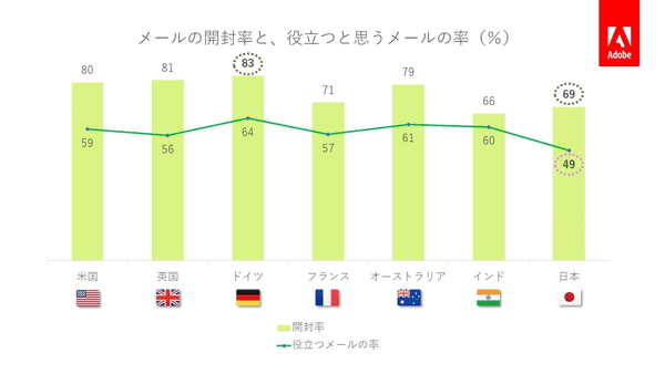 アドビは、電子メール利用実態調査「2019 Consumer Email Survey」の結果を発表した。米国、英国、ドイツ、フランス、オーストラリア、インド、日本の7国における現状を比較分析している。