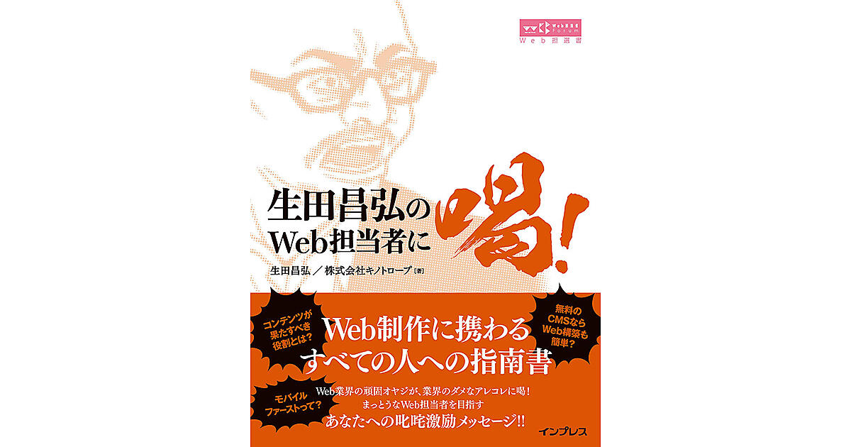 26年の歴史を持つWeb構築のスペシャリスト集団「KINOTROPE」。その代表で、業界のエバンジェリストである生田昌弘がWeb業界のダメなアレコレに喝をいれるWeb担当者Forumの人気連載が書籍化。