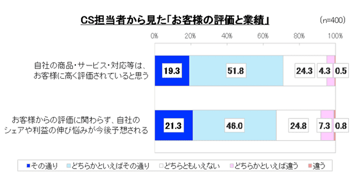 自社の商品・サービス・対応を「お客様は高く評価」、しかし強い危機感も
