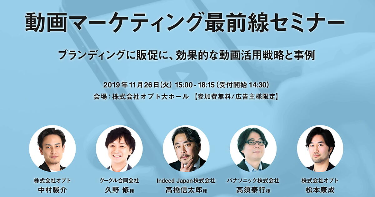 動画マーケティングに興味がある人におすすめのイベント「動画マーケティング最前線セミナー ~ブランディングに販促に、効果的な動画活用戦略と事例~」をオプトが11月26日(火)に市ヶ谷で開催する。