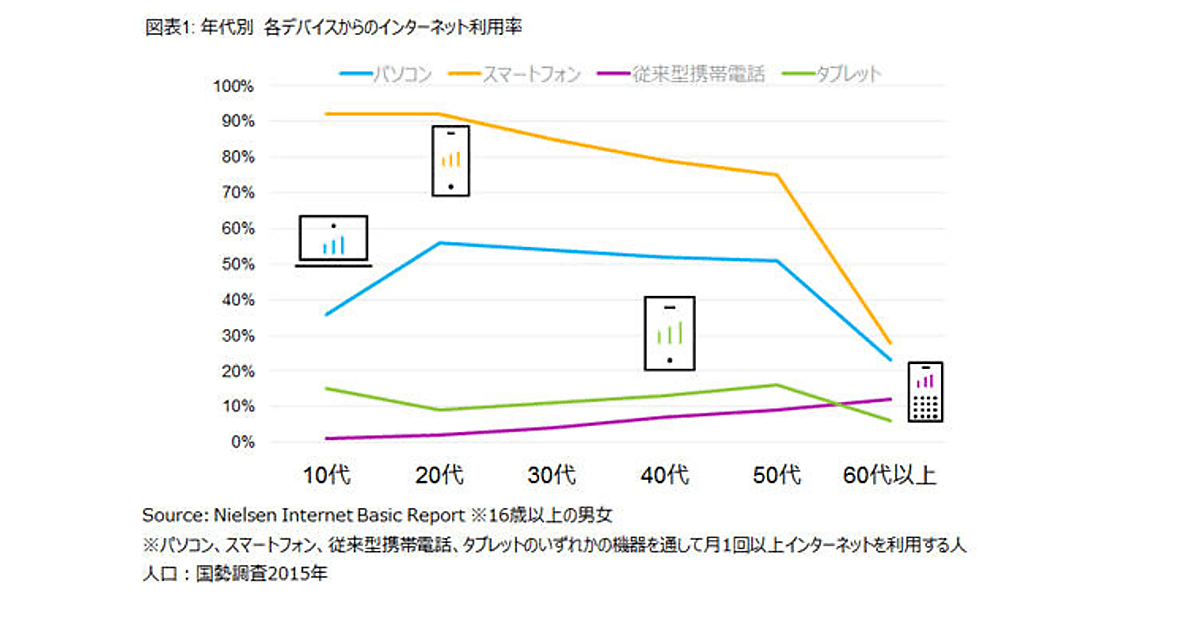 すべての世代で「スマホからのネット利用」がトップに、60代でもパソコンを超える