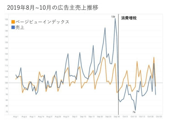 それによると、前月の8月に比べて、増税前最後の週末となる9月28日は、EC売上が56%増まで上昇した。その後、増税直後は落ち込みを見せたが、16%減にとどまっており、2週後には8月並みに回復した。