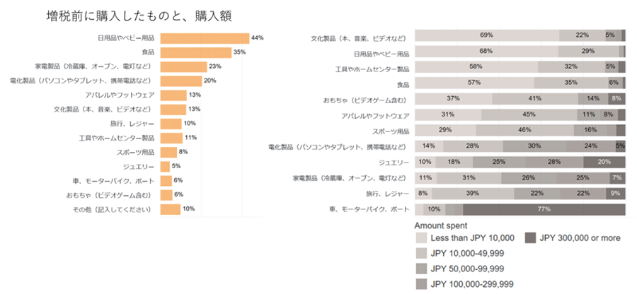 実際、“駆け込み需要”において購買行動が活溌だったのは若い世代だったという。「増税前に買い物をした」と回答したのが、全体では53%だったが、Z世代(18~24歳)では65%、ミレニアル世代(25~38歳)では58%と、それを上回っている。実際に購入した製品群では、日用品やおむつなどの「ベビー用品」44%、「食料品」35%が上位だった。