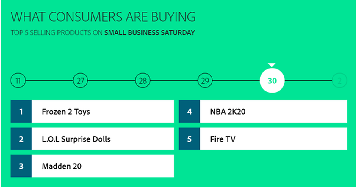 Adobe Analyticsのデータによると、米国東部時間11月28日17時時点で、21億ドルが消費されているとのこと。これは前年から20.2%増となっており、加えて、米国のオンライン売上は、感謝祭夕食後に増えるため、最終的な感謝祭当日のオンライン売上は、過去最高の44億ドルに上ると予測されている。