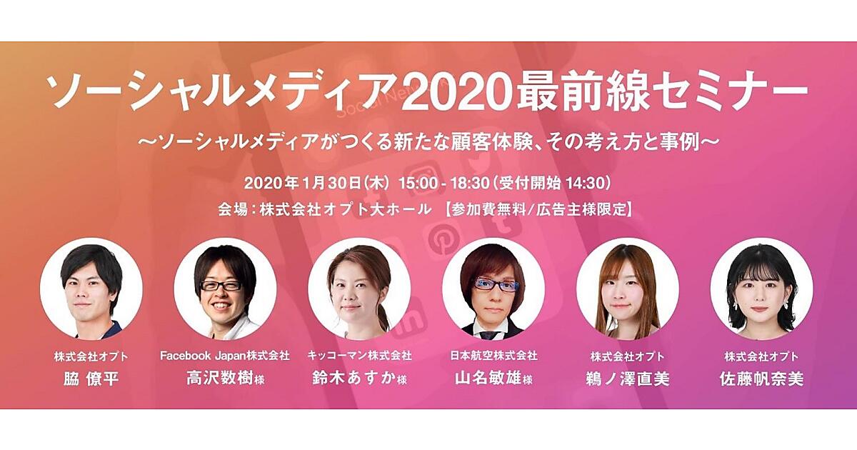 ソーシャルメディアの最新ビジネス活用を考える『ソーシャルメディア2020最前線セミナー ~ソーシャルメディアがつくる新たな顧客体験、その考え方と事例~』をオプトが、2020年1月30日(木)に市ヶ谷で開催する。