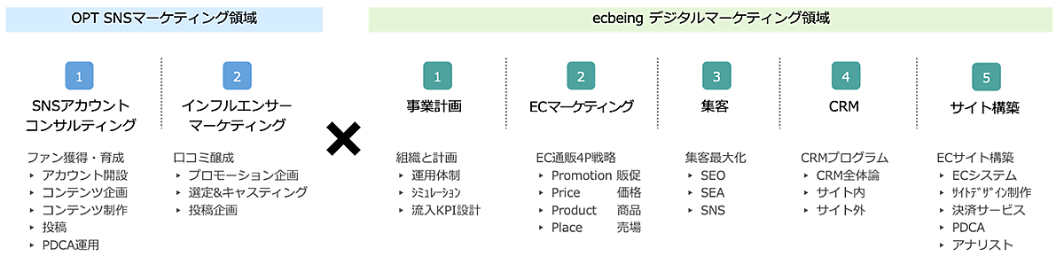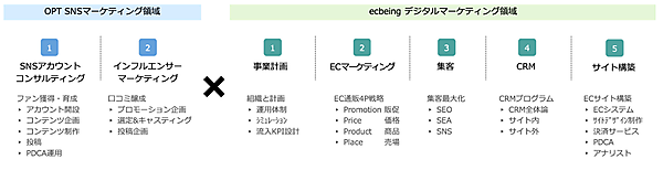 商品購入前にSNSでクチコミを参考にし、購入後には使用感をSNSで発信するケースも多く、生活者の認知、興味、比較検討、購入、シェアの一連の行動を理解するにはビックデータの活用・分析が重要になる。オプトは企業にSNSアカウントのコンサルティングを実施し、ecbeingはECパッケージ「ecbeing」を提供している。