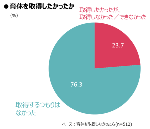 92.1%(512人)が、「育休を取得しなかった/できなかった」わけだが、もともと「取得するつもりはなかった」のか、それとも「取得したかったが、取得しなかった/できなかった」のかが気になるところだ。