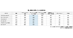 初回購入とリピート購入とで比較すると、実店舗は買い物客の71%が初回購入に至っている。やはり新しい商品は、「店頭で出会い実物を見て買ってみる」という面で強い。しかし、リピート購入先としては、オンラインマーケットプレイスの利用が多くなり、「店頭で特定の商品を再度購入する買い物客」は25%まで激減する。