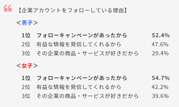 企業アカウントのフォロー理由、「キャンペーン」が圧倒的多数