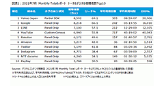 - トータルデジタルで日本人の過半数が「Google」「Yahoo! Japan」「YouTube」を毎月利用。