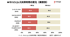 日本におけるキャッシュレス化について、「今後進んでいくと思う 」(とてもあてはまる+ややあてはまるの合計)は全体の68.1%。性年代別の最多は女性20代で78.6%だった。一方、「進むことを期待している」は全体の47.5%。男性では過半数の53.5%が期待していたが、女性は41.8%と半数を下回った。“予測と期待”について男女で落差があるのが興味深い。