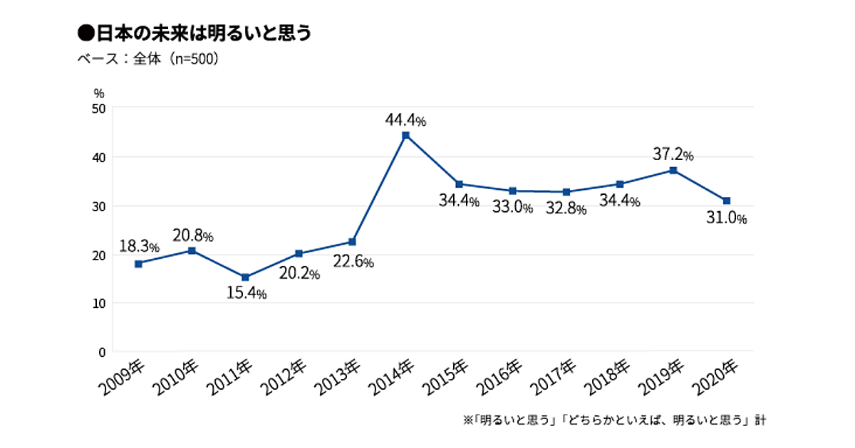 未来予測:「日本の未来は暗い」がほぼ7割、前年より上昇