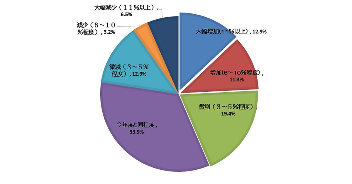 まず、「2020年度の広告マーケティング予算の増減予定」について聞くと、「大幅増加(11%以上)」12.9%、「増加(6~10%程度)」11.3%、「微増(3~5%程度)」19.4%で、合計43.6%の企業が広告予算を増加させる意向を持っていた。「今年度と同程度」は33.9%。残る22.6%ほどが減少意向を示しているが、広告展開に旺盛な企業のほうが多いと見られる。