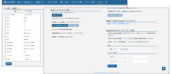 オンラインメディアサービスのイノベーションのグループ会社でBtoB(企業間取引)に特化した営業・マーケティング支援のInnovation & Co.は、同社のBtoB向けマーケティングオートメーションツール「List Finder」で、CRM(顧客関係管理)ツール「Salesforce」とのAPI連携機能の正式提供を始めた、と1月20日発表した。