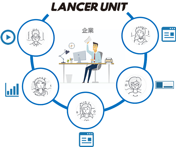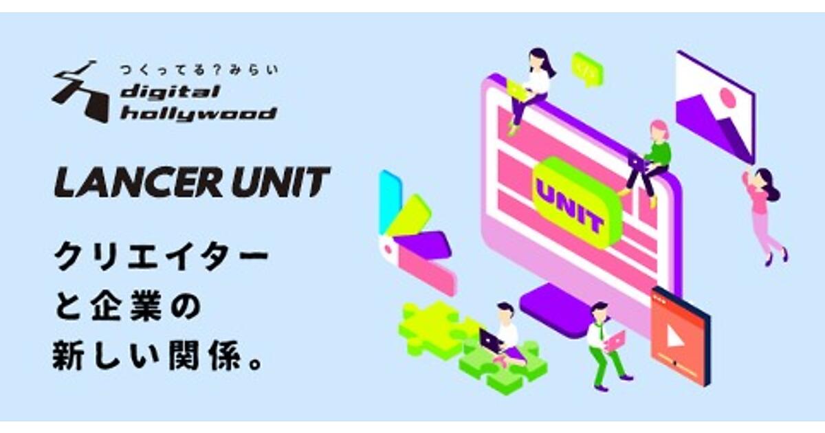 ランサーユニットは、デジタルハリウッドの卒業生を中心にするフリーのクリエーター1~5人のユニットを契約企業専用に確保し、企業はユニット内のクリエーターにいつでも案件が発注できるサービス。案件に必要な技術や経験に合致するクリエーターをデジタルハリウッドがフリーや副業人材から募リ、選定を代行する。