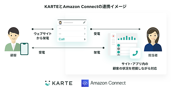 Amazon Connectは、複数の方法を活用するオムニチャネルのクラウドコンタクトセンターで、AI(人工知能)で業務を効率化し、質の高い顧客サービスを低コストで可能にする。KARTEは、ウェブサイトやアプリを利用する顧客の行動をリアルタイムに解析して1人1人を可視化。各顧客に応じたコミュニケーションを実現する。