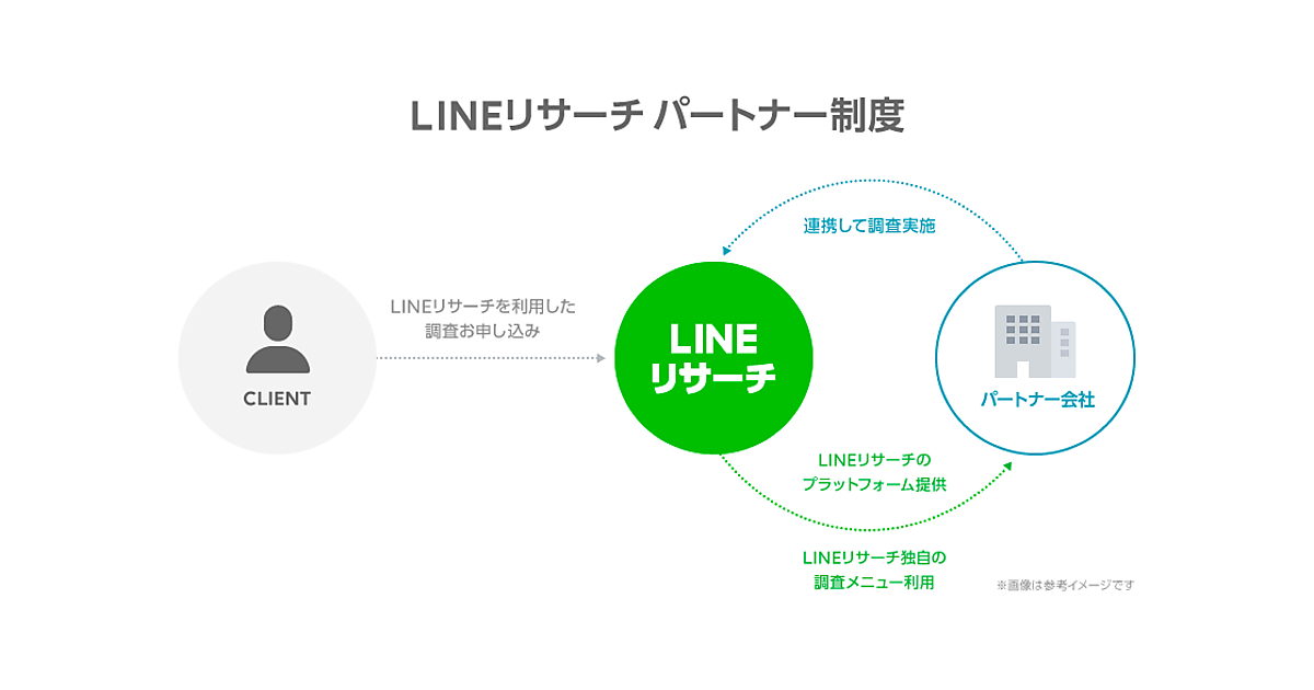 LINEは、リサーチプラットフォーム「LINEリサーチ」で新しいパートナー制度を1月29日に導入した、と同日発表した。調査の実施規模の拡大と質の向上を目的にする。市場調査専門の会社をパートナーに認定して密接に連携することで、クライアント企業が抱える課題の解決につながる高い専門性のある市場調査の展開を目指す。