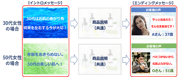 個別の内容を既存動画に組み込んでカスタマイズ動画を自動制作するサービス。低コストで短時間に完成する。データベースから必要なデータをインポートし、既存動画にそれぞれ異なるメッセージが入れられるため、コスト削減と業務効率化が可能。クリエ・ジャパンの同ソリューション「PRISM(プリズム)」を活用する。
