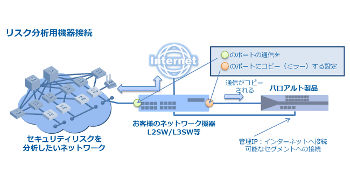 ネットワークセキュリティサービス事業の米国パロアルトネットワークスの日本法人、パロアルトネットワークスの次世代ファイアウオールを企業のネットワーク内に設置し、データ通信を収集する。サイバー攻撃で企業の機密情報や個人情報が盗まれる被害が増加していることから、展開する。料金は50万円から。