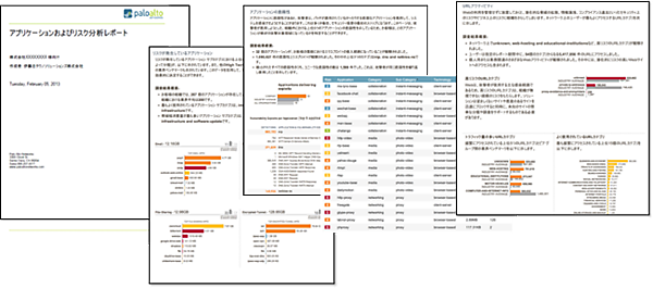 セキュリティ可視化ソリューションは、(1)サービス内容の説明(2)セキュリティ機器の準備(3)現地設置(4)リスク分析リポート作成(5)リポート報告会--の流れで調査を実施する。報告内容は、ネットワーク上の通信状況やアプリケーションの可視化と、セキュリティリスクの洗い出しとなり、対策案を提案する。