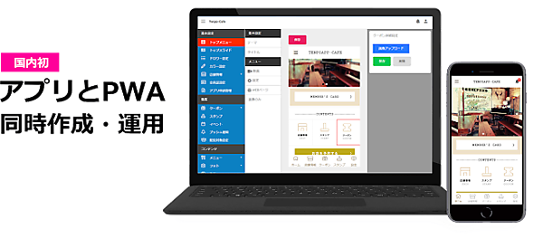 アプリ制作プラットフォーム事業のトランスメディアGPは、アプリとPWA(Progressive Web Apps)が同時生成・運用可能なプラットフォーム「Appro(アプロ)」の展開を始めた、と2月10日発表した。アプリとPWAを同じ管理画面で作成して一括管理・運用できる。店舗向け集客アプリ制作サービス「店舗アプリ」を進化させた。