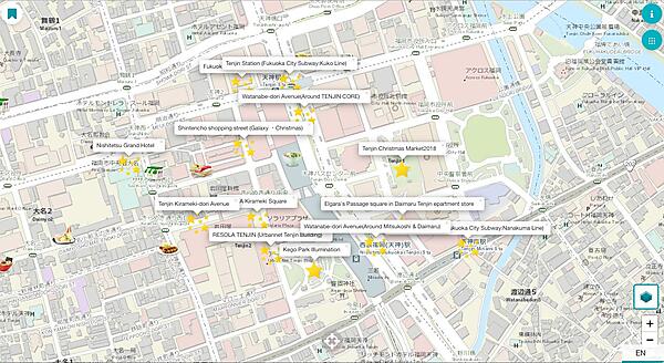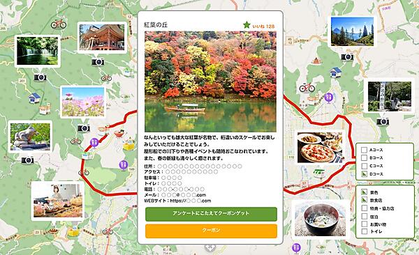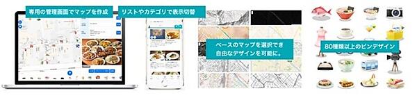 イベント機能はアプリや会員登録のないポイントラリーを実現し、ガイドマップ機能ではデザインのカスタマイズが可能。ウェブメディアとしても使える。日本語で登録すると、自動翻訳で英語、中国語(繁体字・簡体字)、韓国語、タイ語で表示できる。料金は月9800円(マップだけのプラン)から。自治体や商業施設に販売する。
