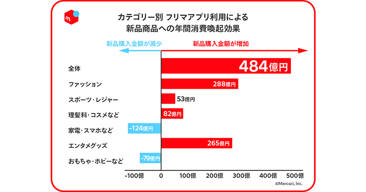 フリマアプリは新品の消費も喚起、年間で約484億円も上昇
