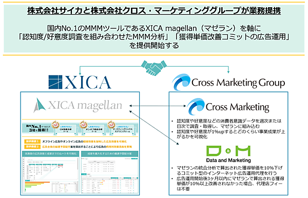 マーケティング用統計分析システム開発のサイカは、リサーチとITソリューション、マーケティング事業を展開するクロス・マーケティンググループと業務提携した、と2月18日に発表した。サイカと、クロス傘下のクロス・マーケティング、同ディーアンドエムの3社共同でインターネット広告運用代理サービスを始める。