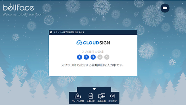 bellFaceは企業の遠隔営業を支援するソリューション。営業先はアプリのインストールやログインが不要で、パソコン、タブレット、スマートフォンから瞬時に接続できる。クラウドサインとの連携では、bellFaceで商談し、サービスの契約・申し込みの意思確認した後、bellFace上からスムーズに契約を結べるようになる。