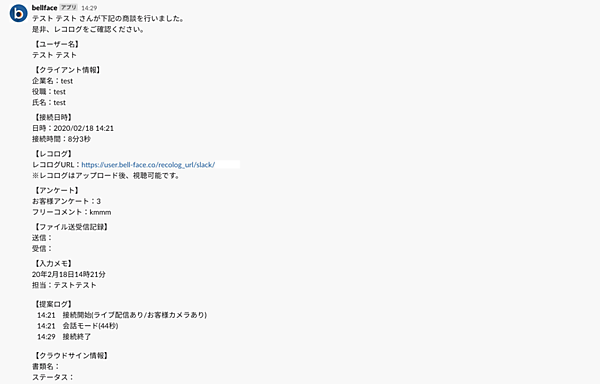 Slack Japanは、Slackを開発する米国Slack Technologiesの日本法人。bellFaceとSlackとの連携によってSlackチャンネルに自動的に商談履歴を通知する。商談を録画している場合には、録画データのURLの通知で商談の動画が容易に確認できるようになる。クラウドサイン、Slackとの連携でbellFaceでの商談が効率化する。