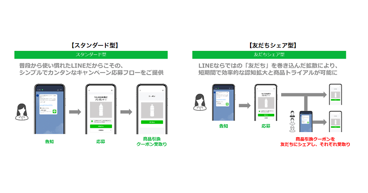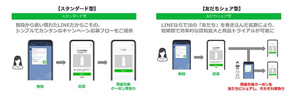 電通グループを横断した販売促進・店頭分野のデジタルソリューション推進プロジェクトチーム「Boostore(ブーストア)」は、LINEのコミュニケーションアプリ「LINE」を活用したサンプリングサービス「スタンダードサンプリング for LINE」と「友だちシェアサンプリング for LINE」を開発した、と3月9日発表した。同日に提供を始めた。新規ユーザーによる試用やクーポン利用率向上が期待できるという。