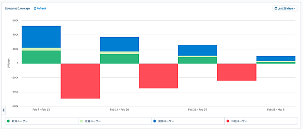 ツールのAmplitudeは、セッションではなくユーザーをベースにユーザーの行動を分析。顧客への理解を深めることでデータに基づくサービス改善につなげられる。チャート上でサブメニューを呼び出してユーザーセグメントが作成でき、Amplitude Engageによってサードパーティのマーケティングソリューションと同期が可能。