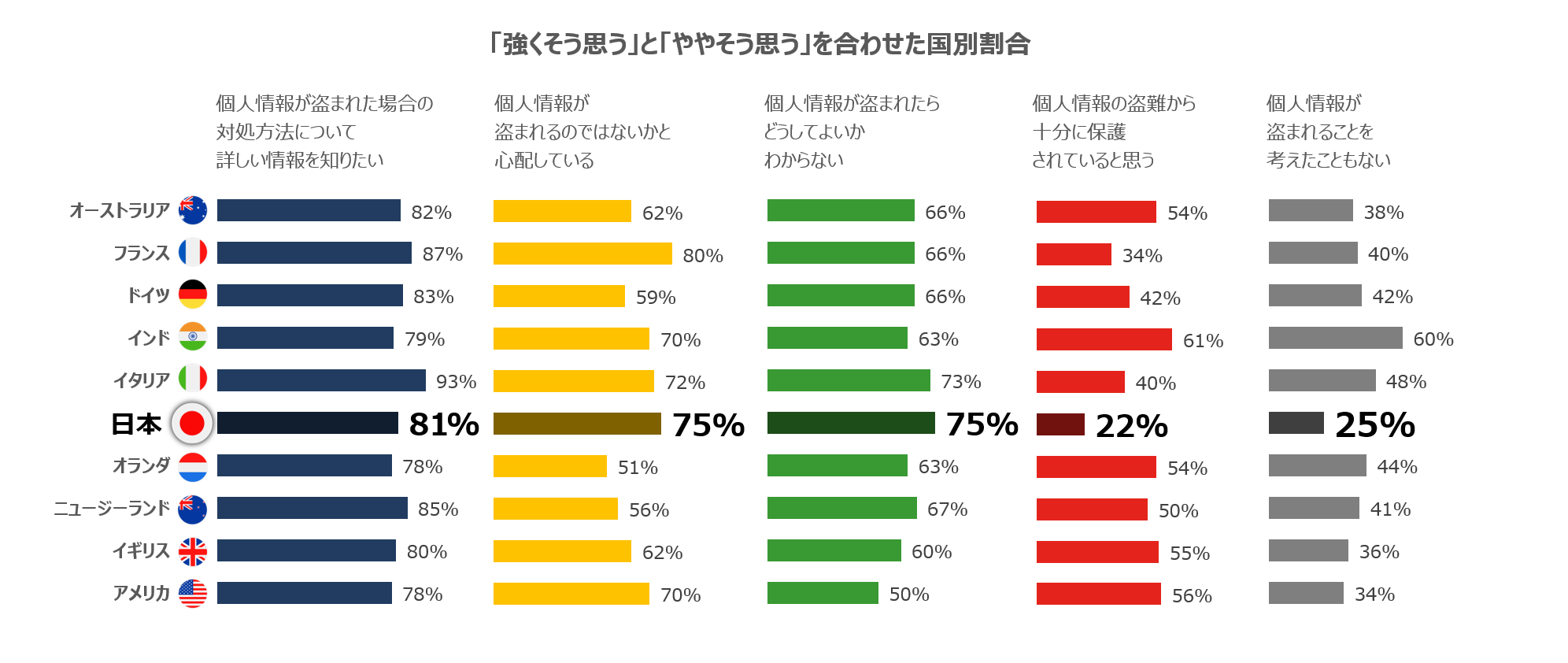 個人情報盗難に対する意識、日本人は不安感・危機感が高め