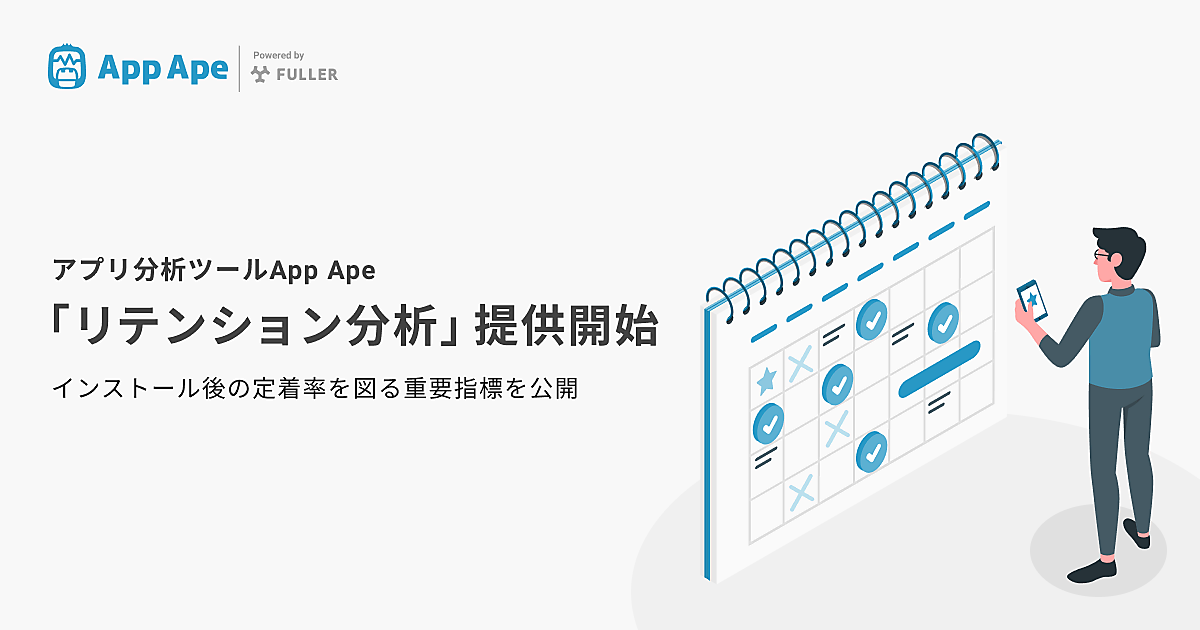 スマートフォンアプリ分析・開発支援事業のフラーは、同社のアプリ分析ツール「App Ape(アップ・エイプ)」でリテンション(継続)率を推計する新機能「リテンション分析」(β版)の展開を始めた、と4月6日発表した。最大3カ月のカテゴリ別、性年代別、日ごと、週ごと、月ごとなど詳細な条件が設定できる形で提供する。