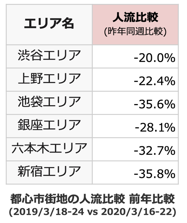 - 【調査対象】新型コロナウイルス感染症に対する政府基本方針の、発表前とその後の日程で、人の流れを比較。