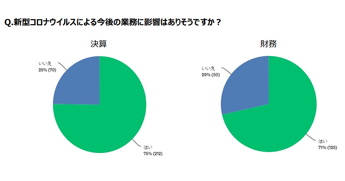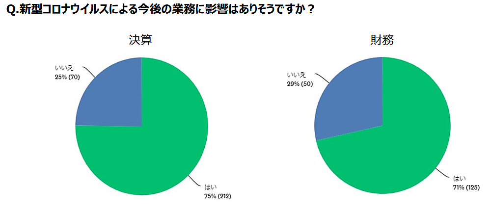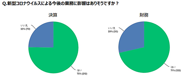 決算業務・財務業務ともに70%以上がコロナの影響下、テレワーク対応にも限界