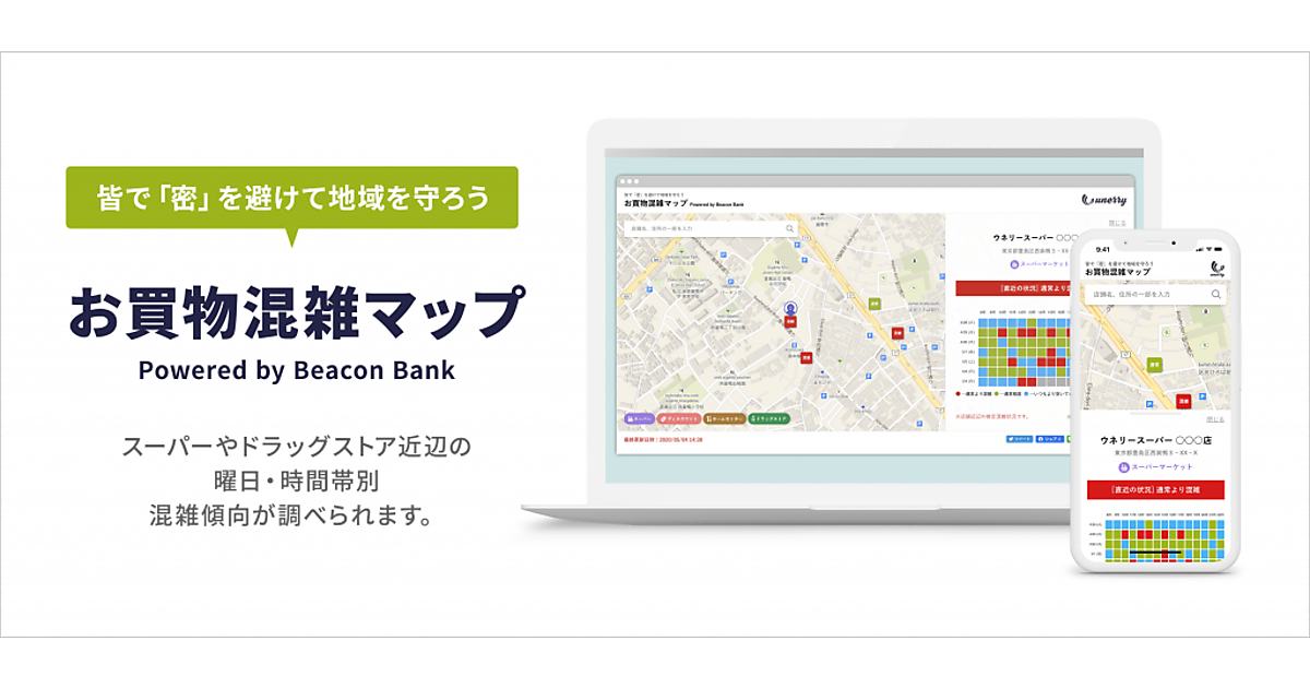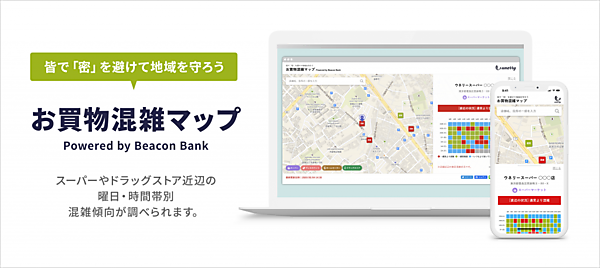 新型コロナウイルスへの感染防止のため「密閉」「密集」「密接」の「3密」を避ける行動が求められていることから公開した。身近な店舗近辺の通常より混んでいる曜日・時間帯の傾向を消費者が知ることで買い物時間が分散され、感染拡大抑止につながると考えた。スマートフォンの位置情報を基に店舗近辺約100mの混雑状況をAIで解析する。