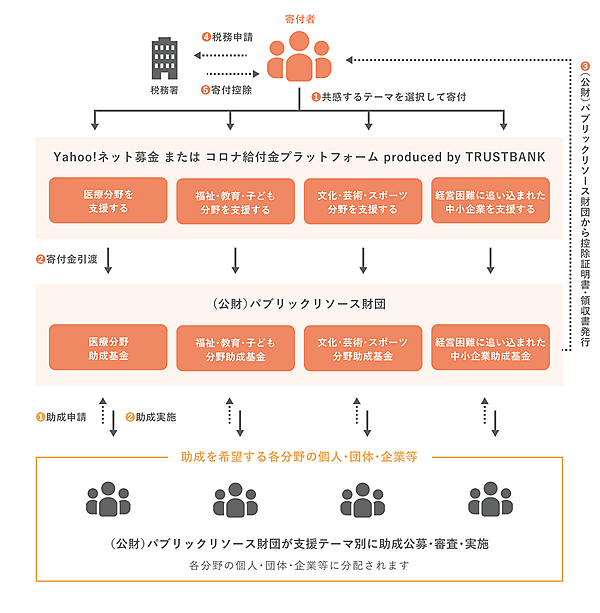 パブリックリソースが(1)医療(2)福祉・教育・子ども(3)文化・芸術・スポーツ(4)経営困難に追い込まれた中小企業--の各分野で基金を立ち上げ、資金支援を求める個人、団体、非営利法人、医療機関、中小企業・個人事業主をサイトで公募。寄付をする際は分野を選んで金額を入力し、クレジットカードで決済する。100円から。