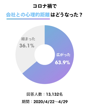 - (5)「コロナ禍で、会社との心理的距離はどうなった?」対象:13,132名、期間:2020年4月22日~4月29日