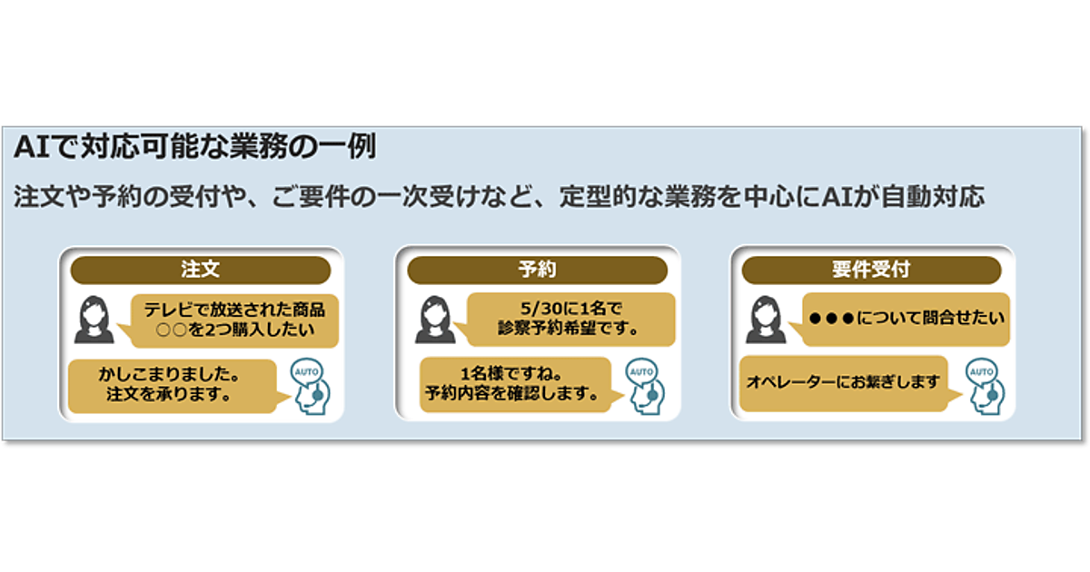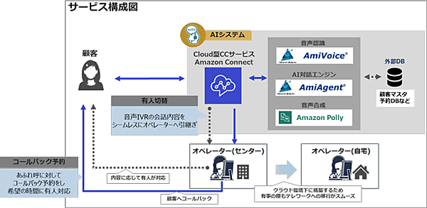 注文や予約受け付け、夜間などの定型業務はAIで自動対応し、複雑な問い合わせは人による対応に引き継ぐ。従来の音声AI自動応答はコストの高さやシステム構築に時間がかかることが課題だったが、クラウド型なので最短2週間での導入が可能。AWSの他サービスと連携した柔軟なシステム拡張にも対応する。