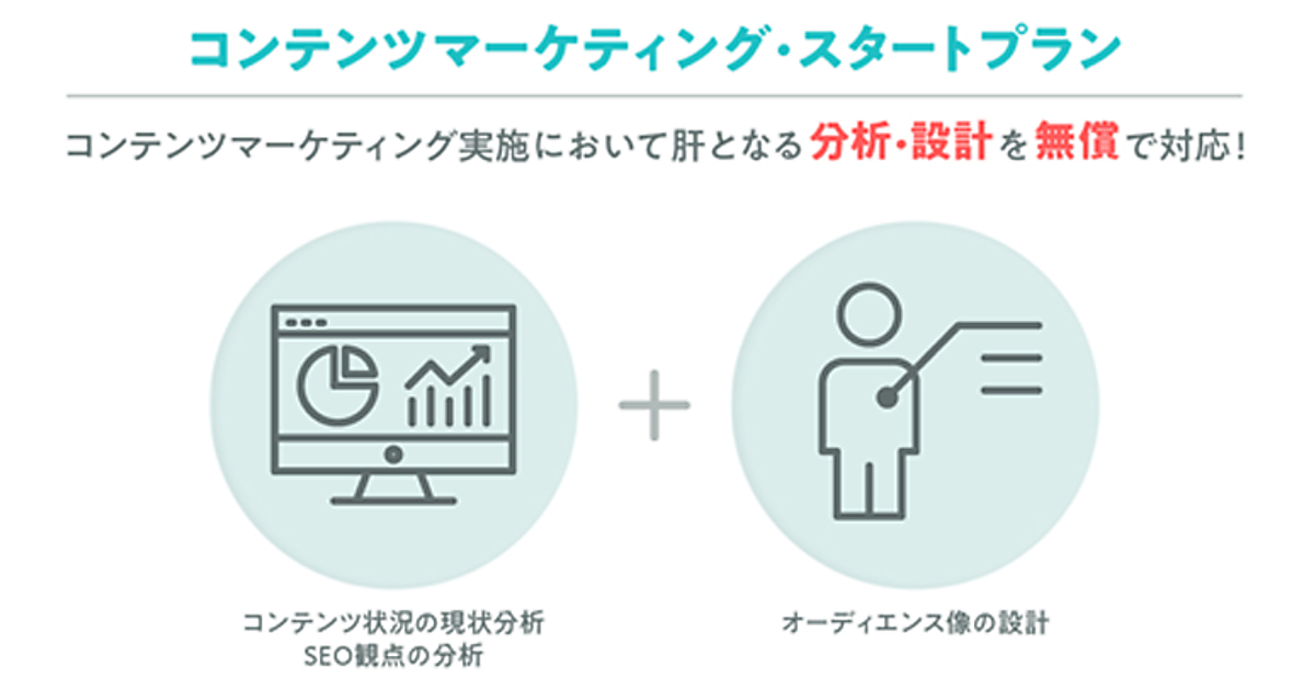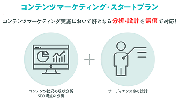 コンテンツマーケティングは、有益な情報を発信することで見込み客やファンを獲得する手法を意味する。スタートプランは現状分析とオーディエンス(情報の受け手)設計を基にする。ウェブサイト内のコンテンツや対象キーワードの分析、ユーザーの意思決定要因(メンタルモデル)の設計などを約3週間の短い期間で無償で行う。