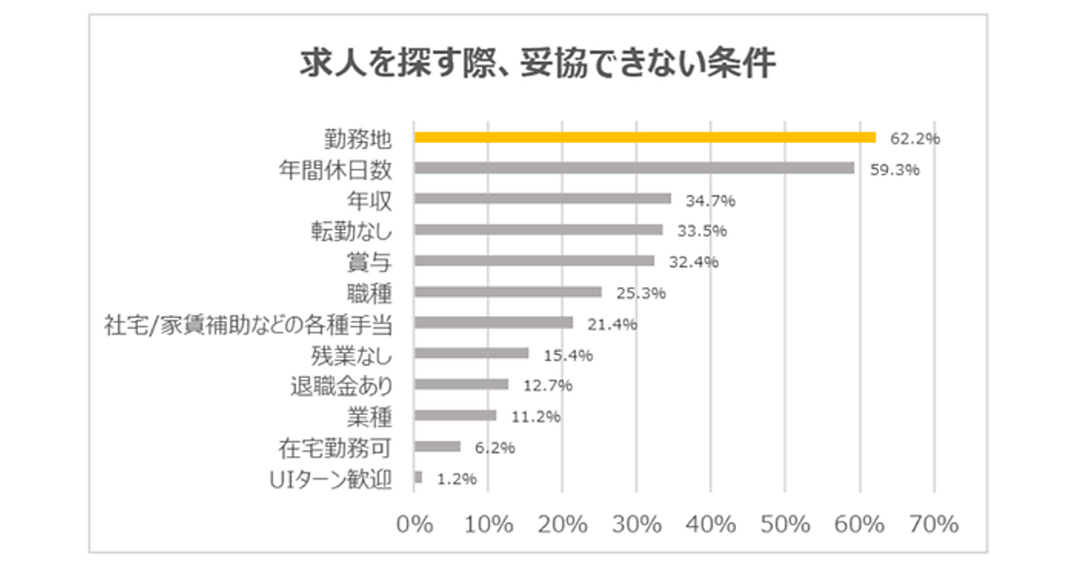 求人を探す際に妥協できない条件、2位の「年間休日数」を上回ったのは?