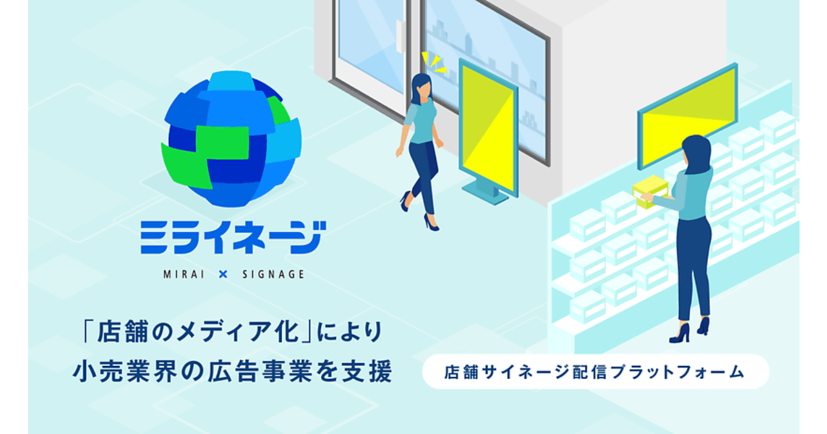 インターネット広告事業のサイバーエージェントは、小売業向けの店舗サイネージ(電子看板)配信プラットフォーム「ミライネージ」の展開を始めた、と6月25日発表した。店舗に設置したサイネージをネットワーク化することで店をメディア化し、小売店舗の広告事業を支援する。同社AI事業本部の小売DXセンターが提供する。