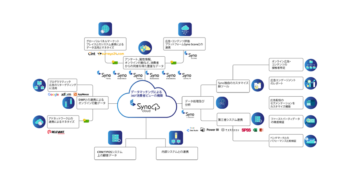 Syno Japanのソリューション「Syno Cloud(シノクラウド)」でゼロパーティデータの構築から活用までワンストップで支援する。「1stパーティデータ(自社顧客やWebサイト訪問者から収集した情報)」管理のDMP(データマネジメントプラットフォーム)やCDP(カスタマーデータプラットフォーム)と連携して共通IDで一括管理し、BIツールで分析する。