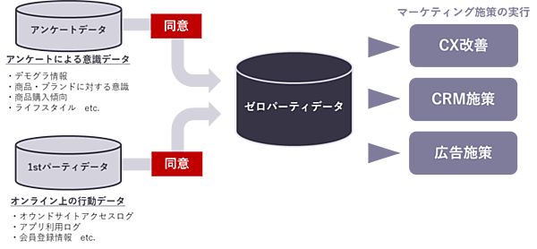 CCIはSynoCloudを活用して、アンケートによる「顧客の意識データ」とアクセスログの「行動データ」を組み合わせ、データ利用で顧客の同意を得たゼロパーティデータを構築する。蓄積したゼロパーティデータを基にしたCX(顧客体験)やCRM(顧客関係管理)施策など、次世代型デジタルマーケティングを実現する。