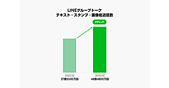グループにおけるテキスト+スタンプ+画像の送信数も増加しており、緊急事態宣言が発令された4月は過去最大となる56億4,100万回のテキスト+スタンプ+画像がグループコミュニケーションで使用されたという。2月・5月比では全体で141%増だった。