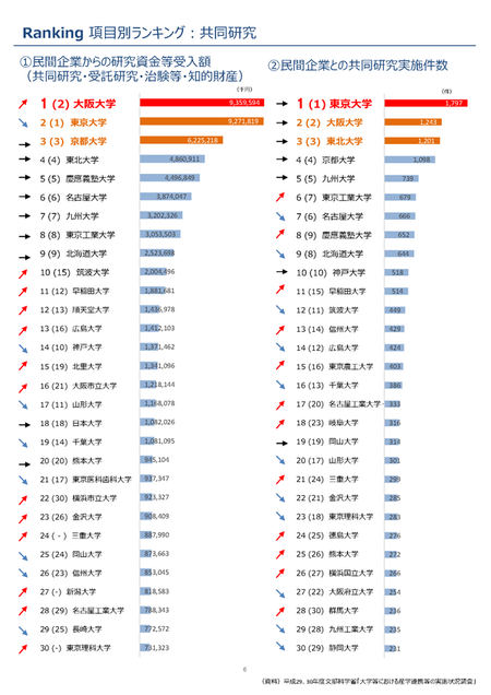 民間企業からの研究資金等受入額、大阪大学が東京大学を上回る