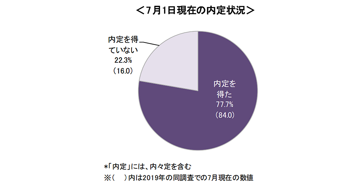 2021年卒業予定者の7月1日時点の内定率は77.7%