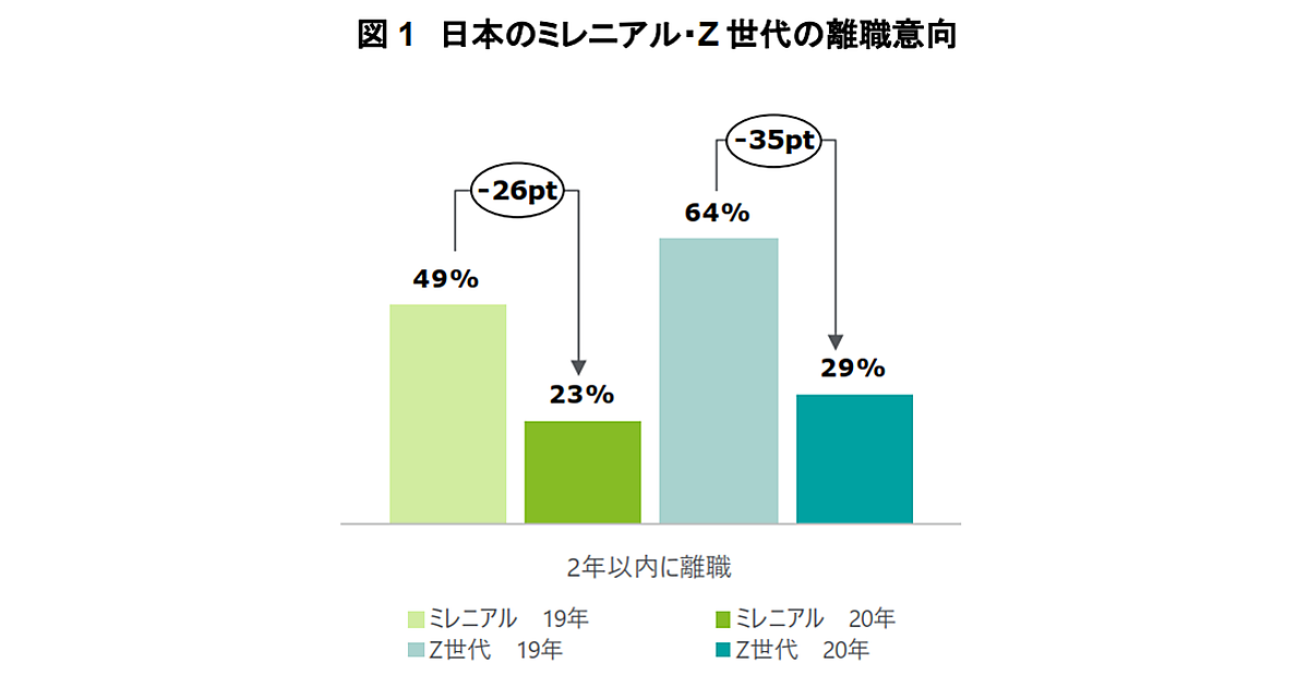 日本のミレニアル世代・Z世代、企業に留まりたい人が増加